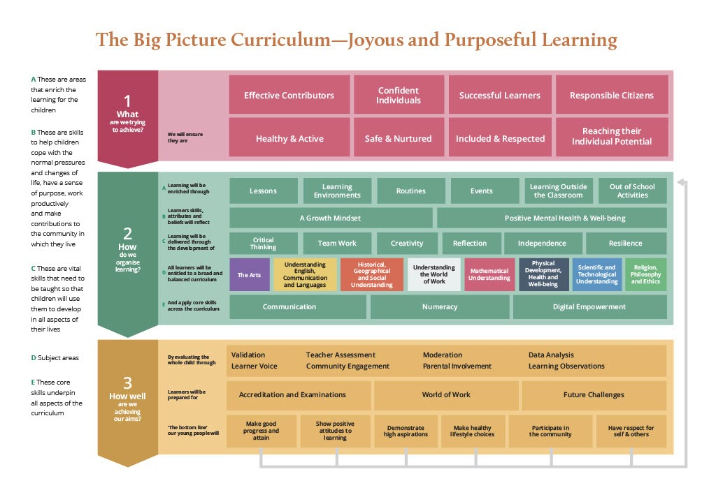 The Bailiwick Big Picture Curriculum has been written with a view to prepare the children and young people of our islands for the opportunities and challenges of living in the 21st century and its principles are embedded in our curriculum.